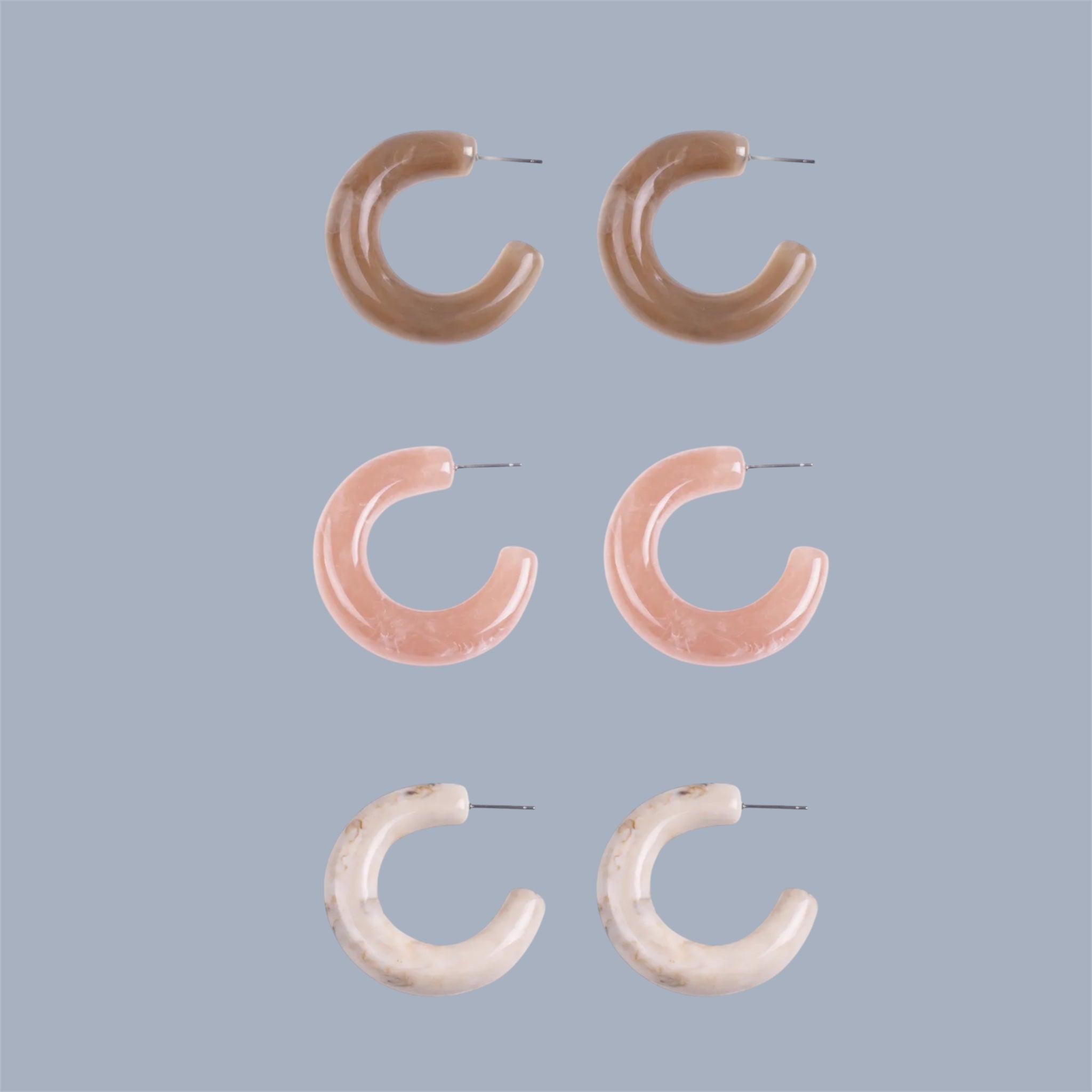 Pendientes de aro elaborados en resina ligera, con un diámetro exterior de 4 cm y un diámetro interior de 2,2 cm.