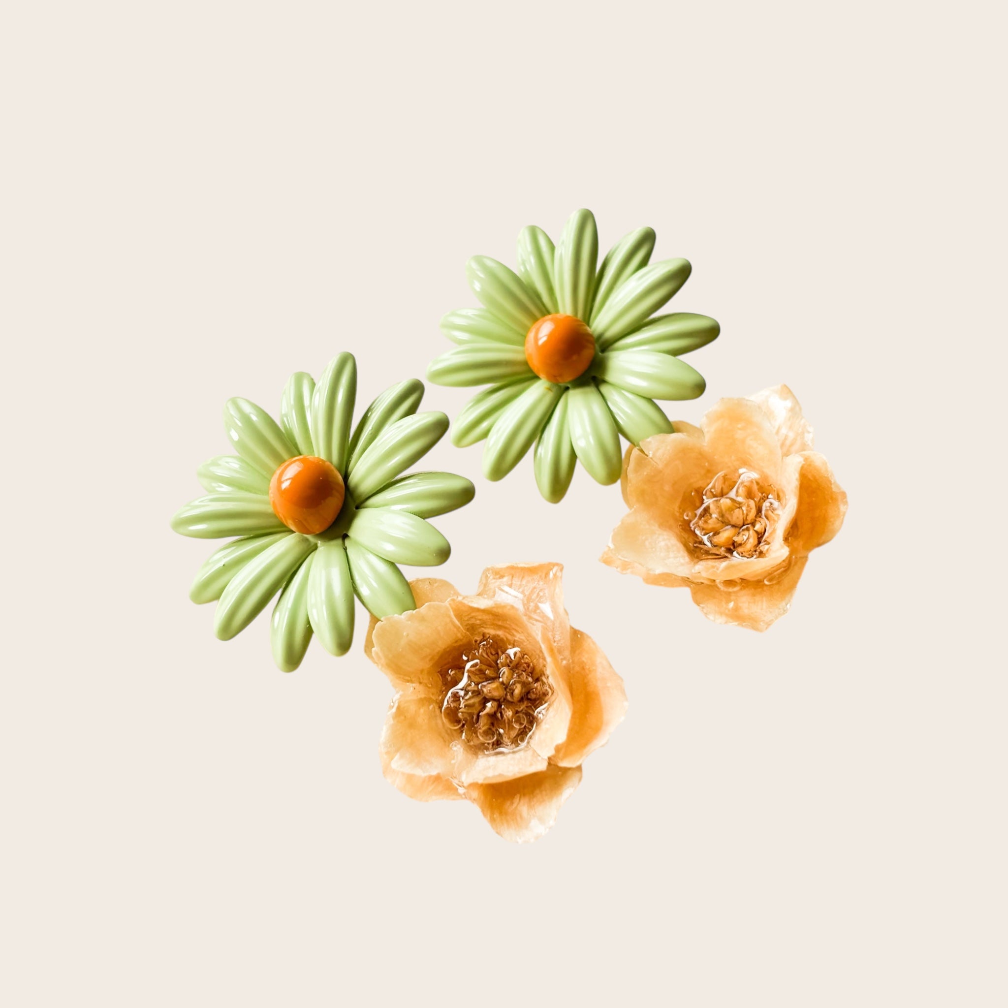 Pendientes Caléndula-Verde/Marrón