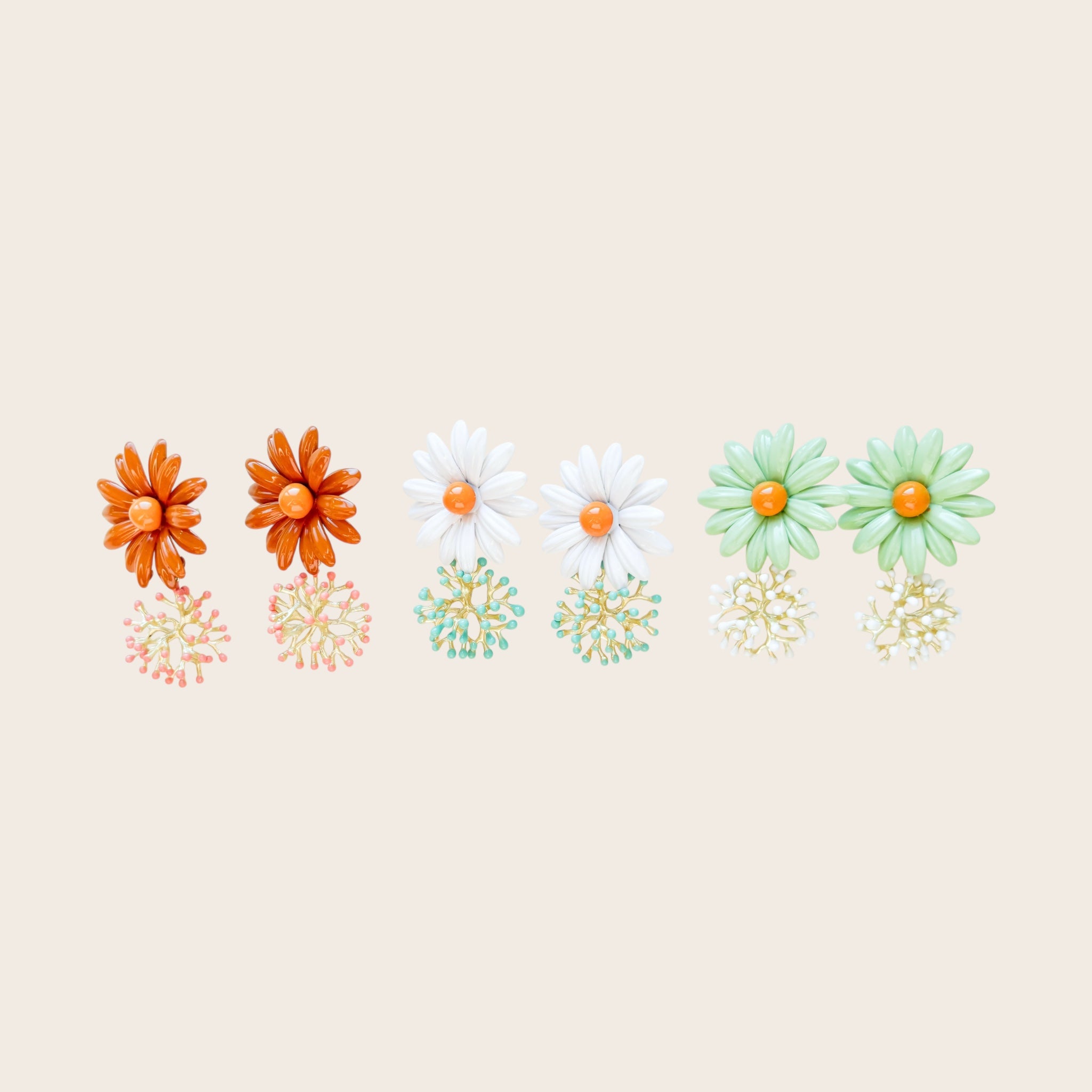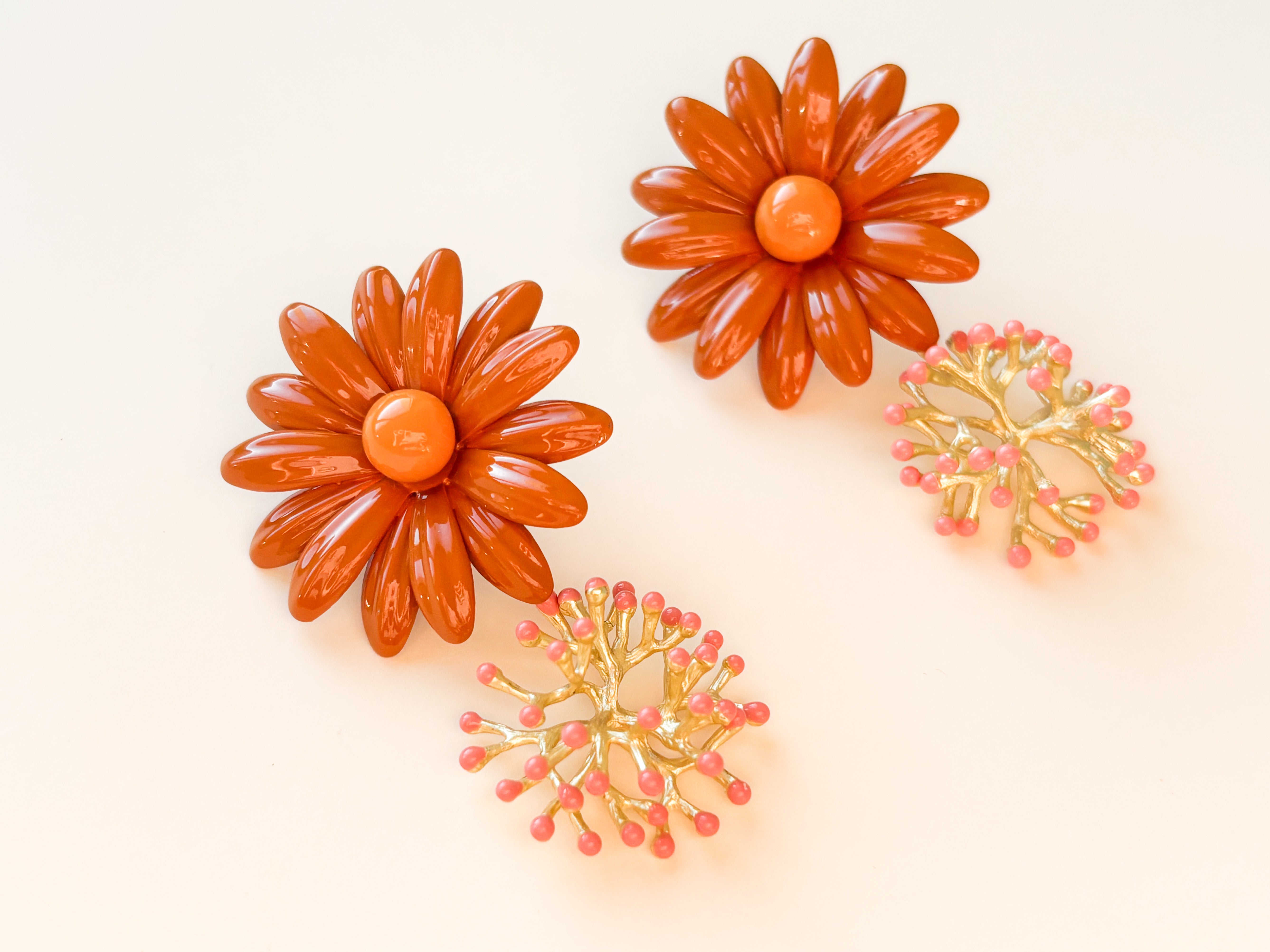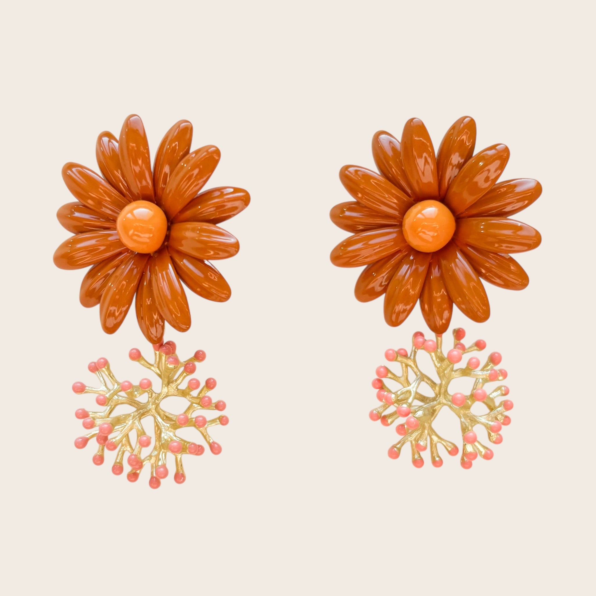 Estos pendientes son una pequeña escultura para llevar.   La flor, sellada en resina con un acabado...