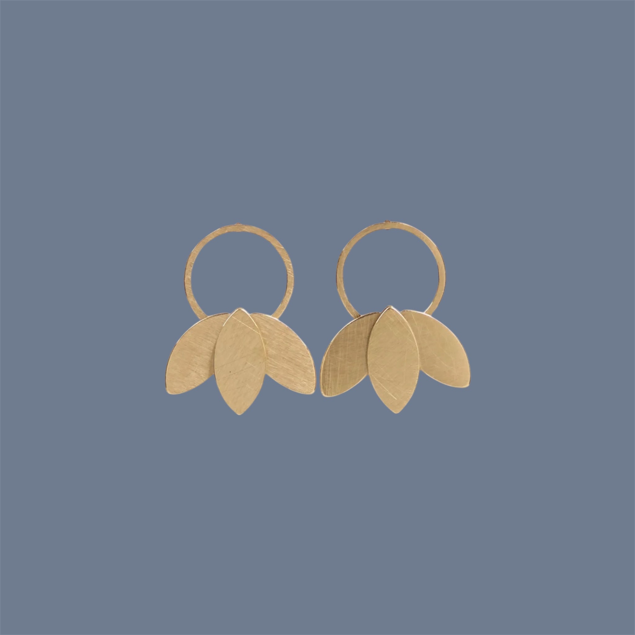 Pendientes de aro con colgantes en forma de hojas superpuestas. Fabricados en acero inoxidable de alta calidad, destacan por su acabado dorado satinado y su estilo minimalista con inspiración natural. Una pieza ligera y versátil que aporta movimiento y elegancia a cualquier look.