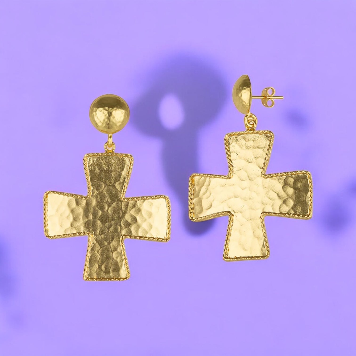 Una joya que es puro carácter y estilo. Estos pendientes en forma de cruz tallada, bañados en...