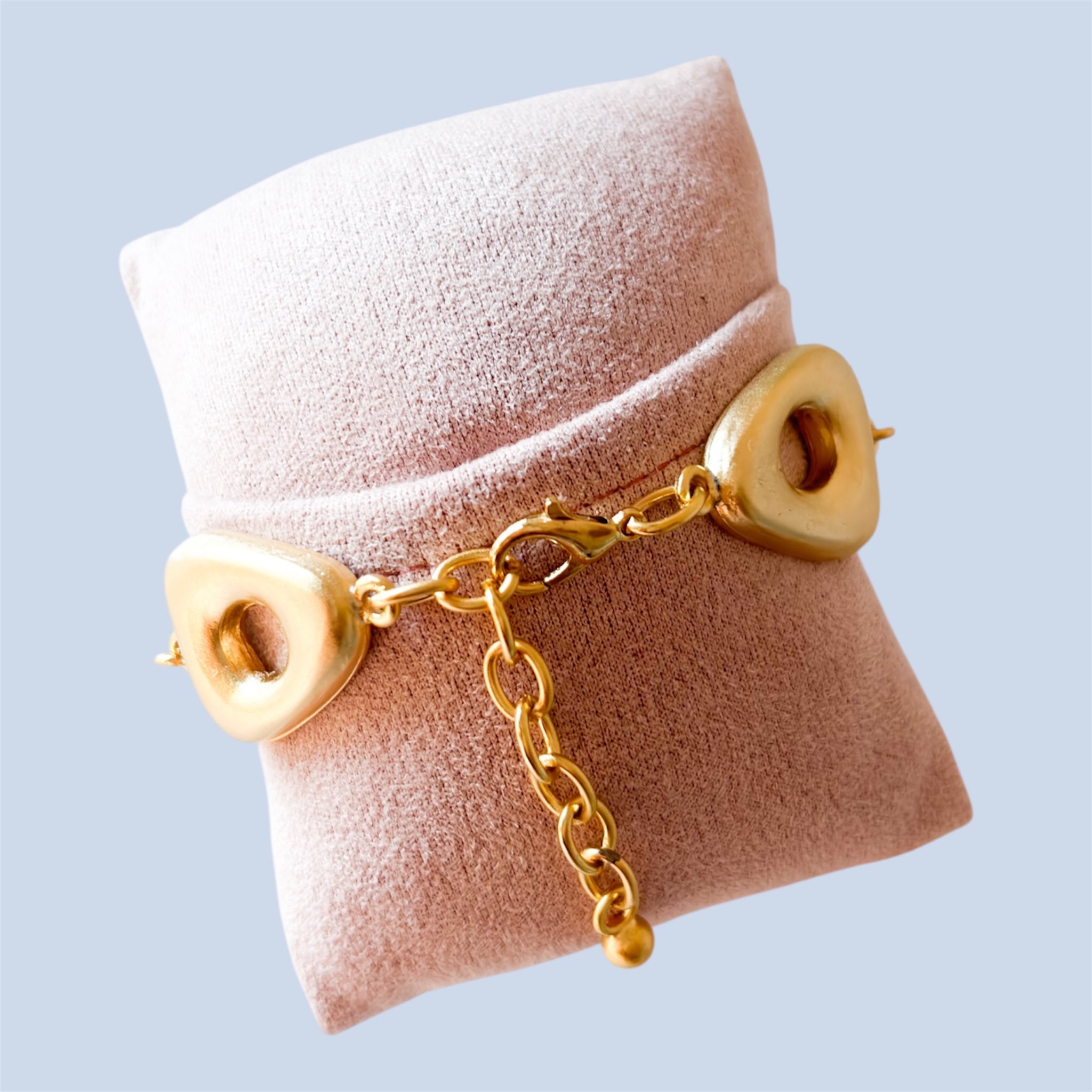 Un diseño con líneas suaves y orgánicas que envuelven la muñeca con estilo contemporáneo. Esta pulsera está formada por piezas irregulares bañadas en oro, unidas entre sí con un elegante acabado pulido.
