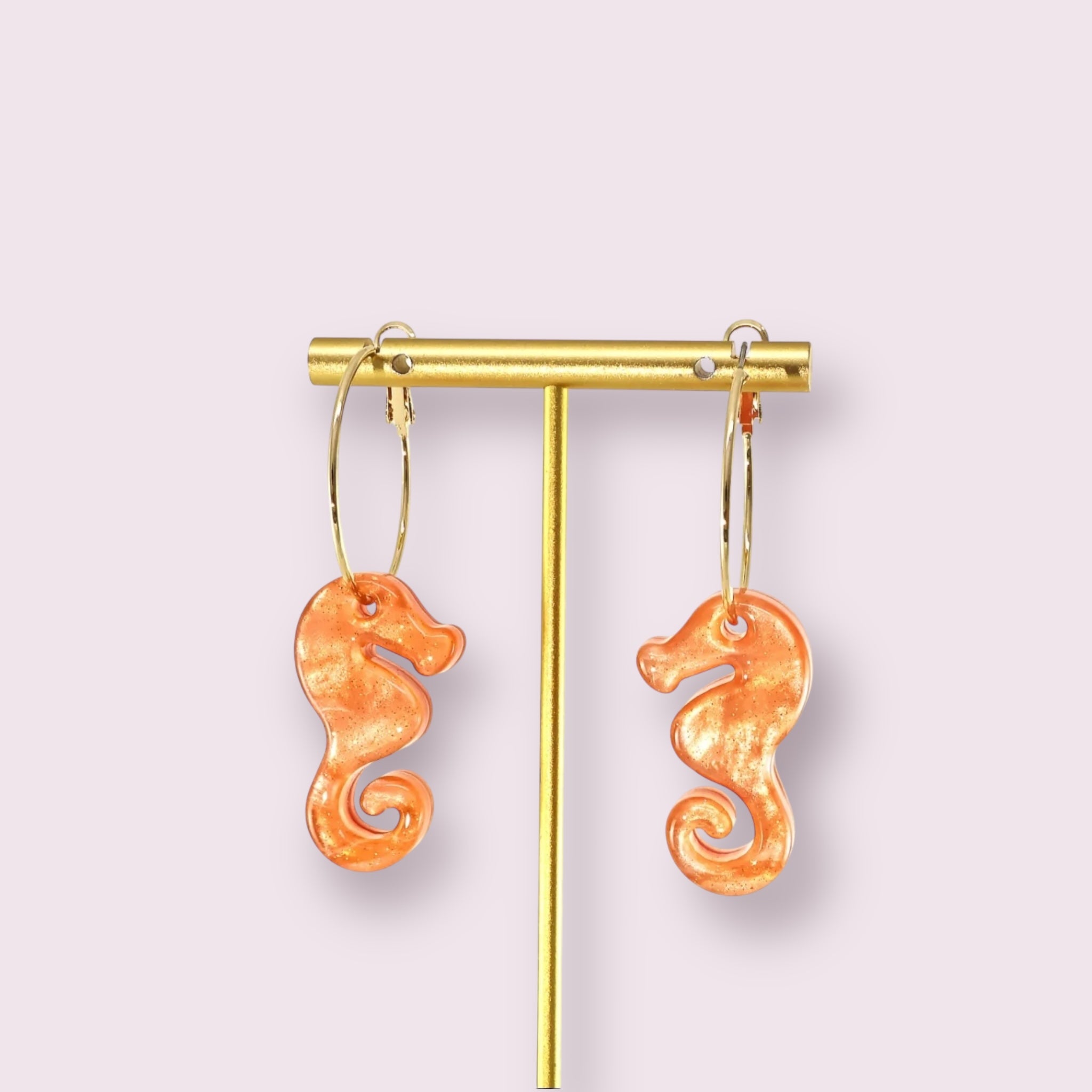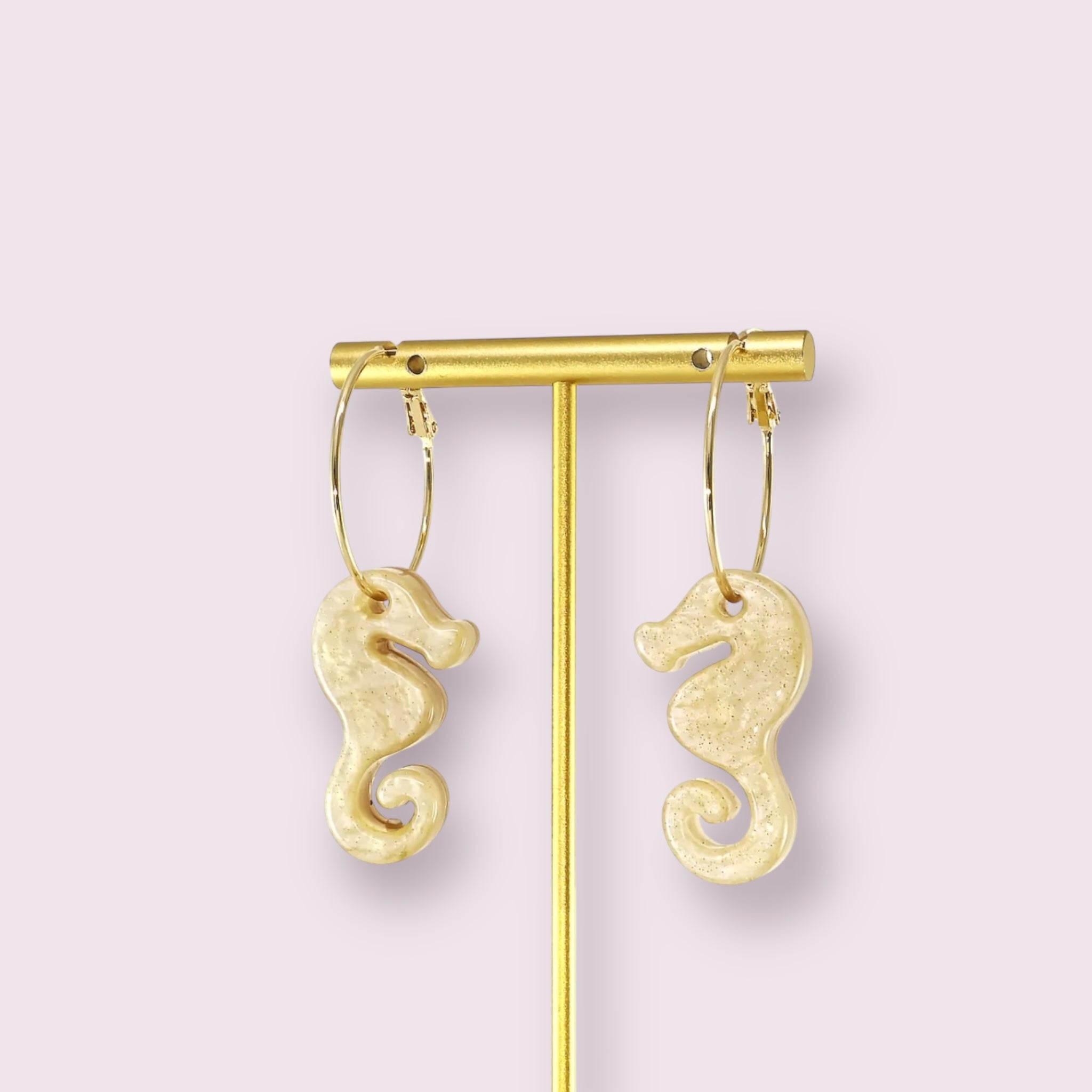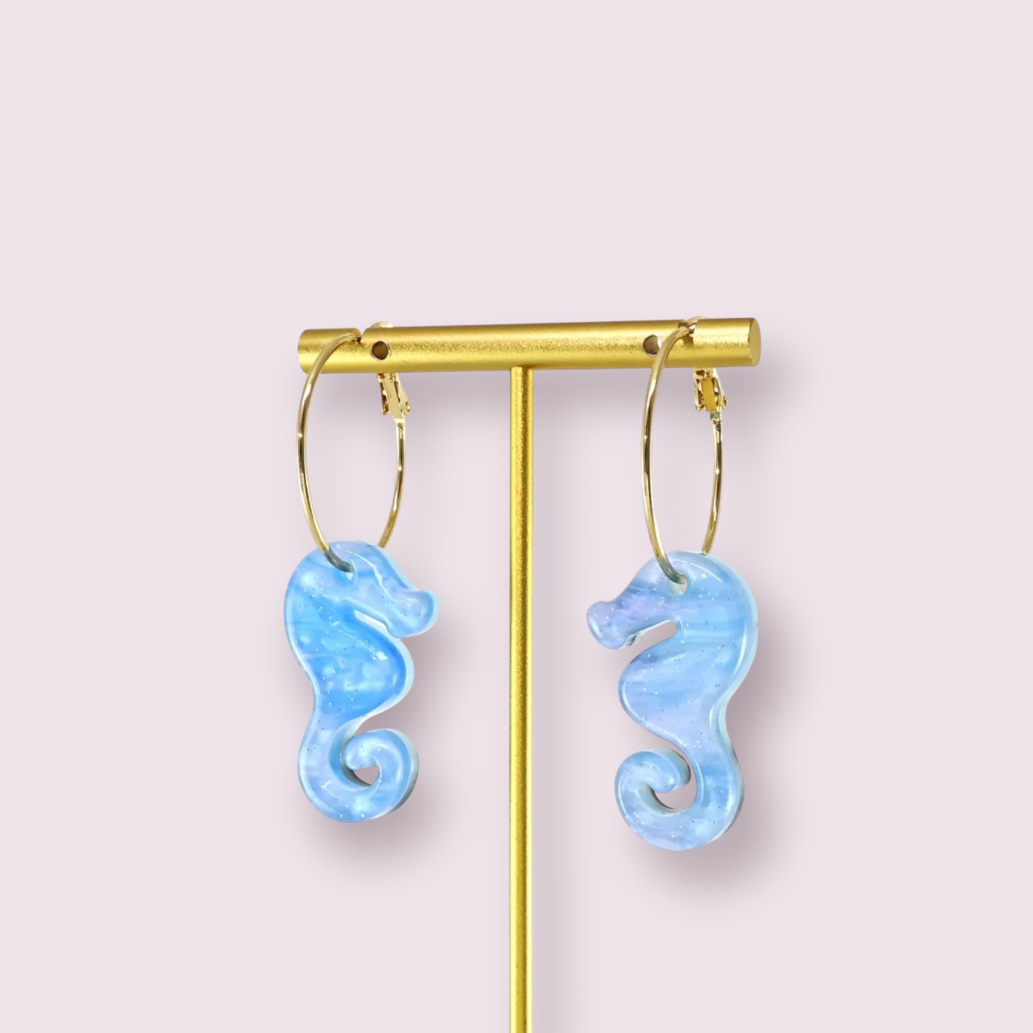 Dale un toque marino y divertido a tu outfit con estos mini aros que llevan un caballito...